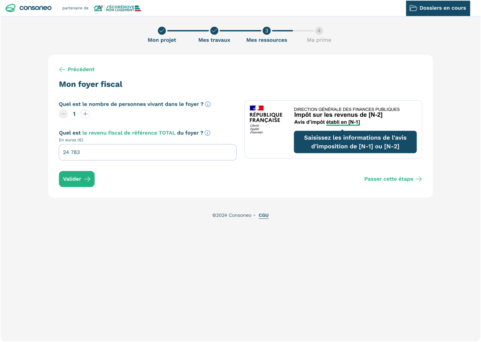 L’utilisateur a ainsi la possibilité de renseigner le plus d’information possible sur sa situation afin que son résultat de prime soit le plus précis possible. Il peut également procéder à une simulation plus rapide en passant certaines étapes.