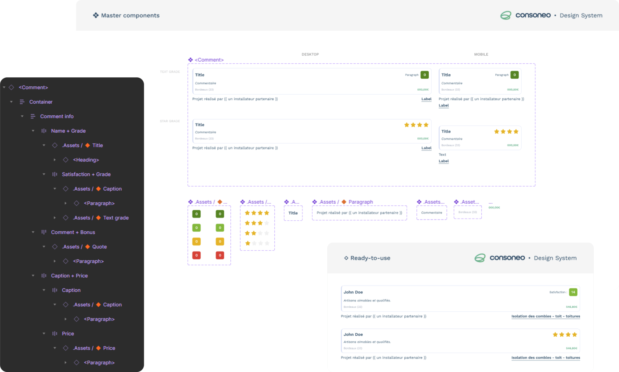 Notre souhait à long terme serait que le DS devienne la source de vérité pour tous les projets de Consoneo, qu’ils soient “brandés” Consoneo ou en marque blanche, et qu’une page dédiée au DS et détaillée existe sur consoneo.com.