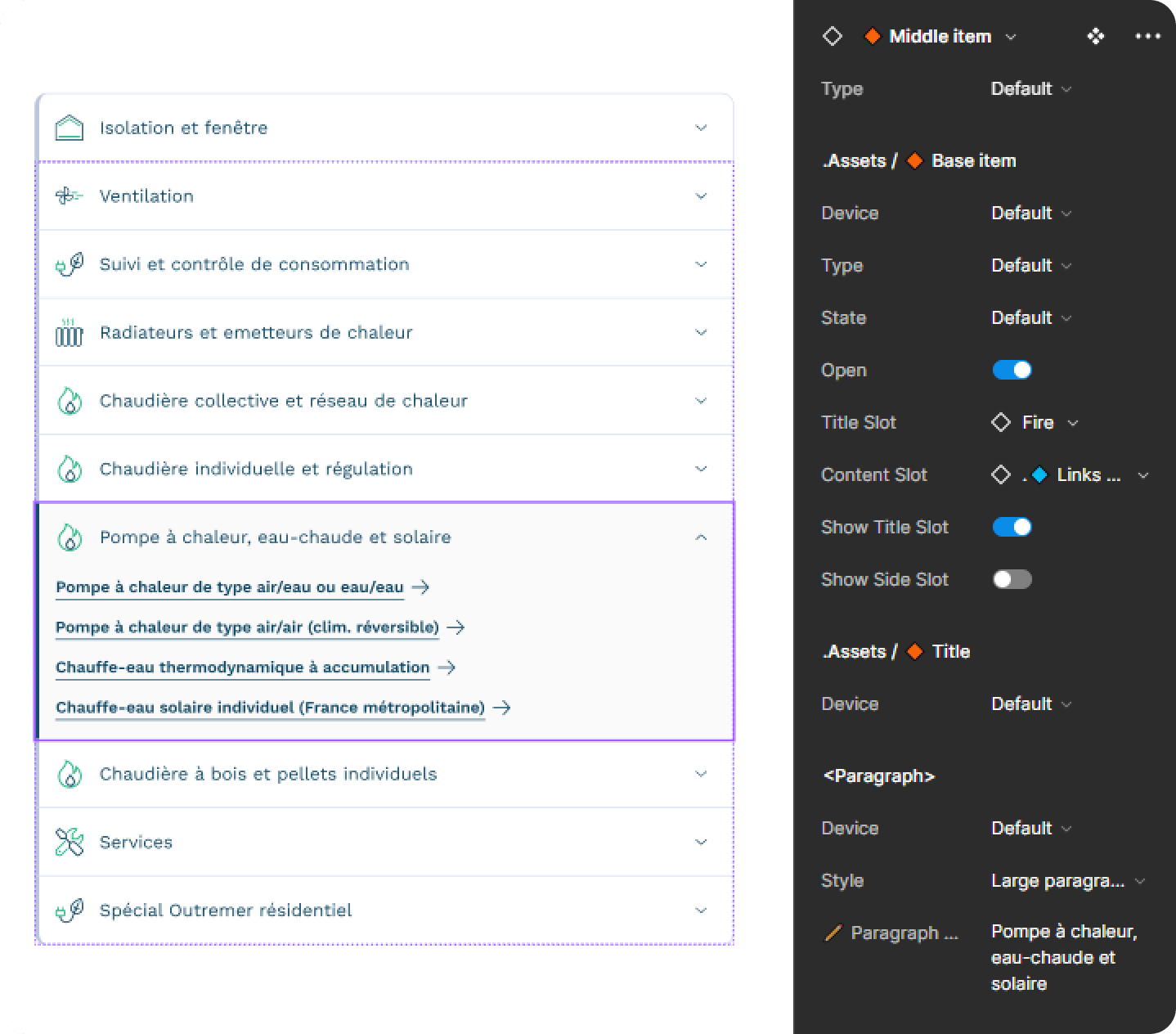 D’autres composants utilisés comme “props” prennent quant à eux tout leur sens une fois imbriqué dans un autre. Ex : “Label” dans “Textfield” ou “Paragraph” dans “Accordion”