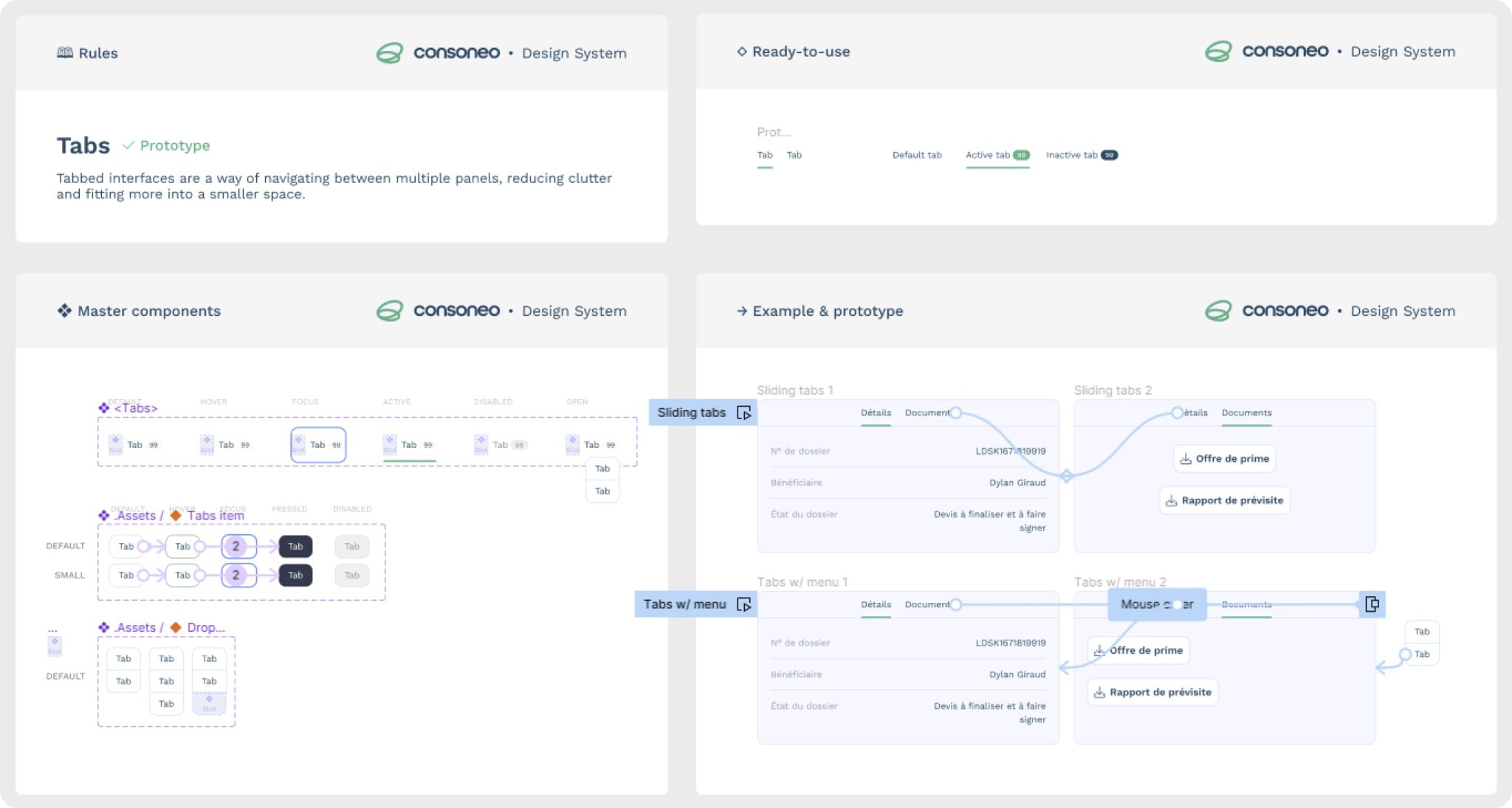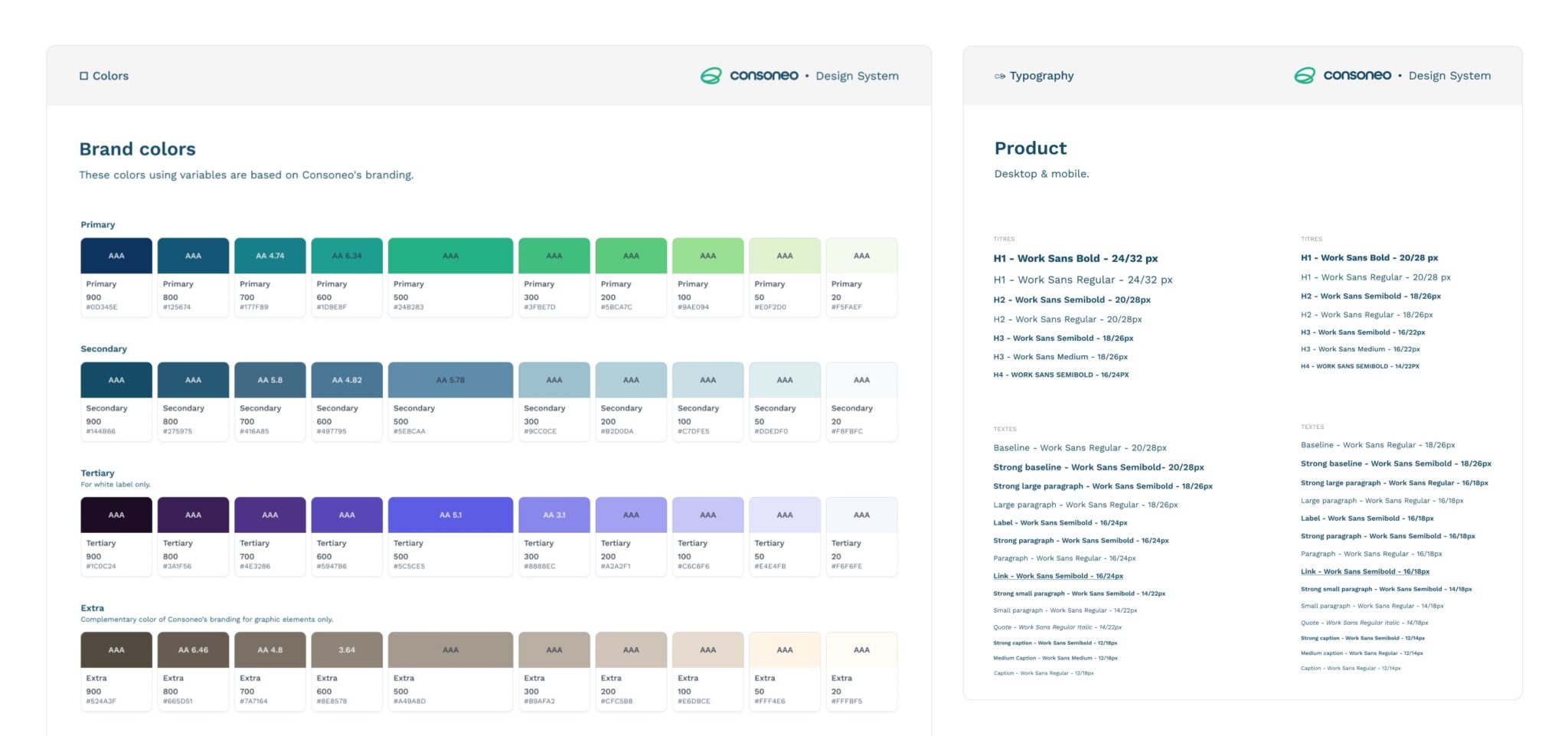 Le besoin d’établir une harmonie entre les différents produits est donc rapidement devenu une nécessité et une des priorités numéro un. Tandis que j’encadrais mon équipe dans ce rebranding, j’avais en parallèle pour mission de concevoir, seule dans un premier temps, le tout premier Design System de Consoneo, sur lequel reposerait nos produits existants ainsi que les prochains.